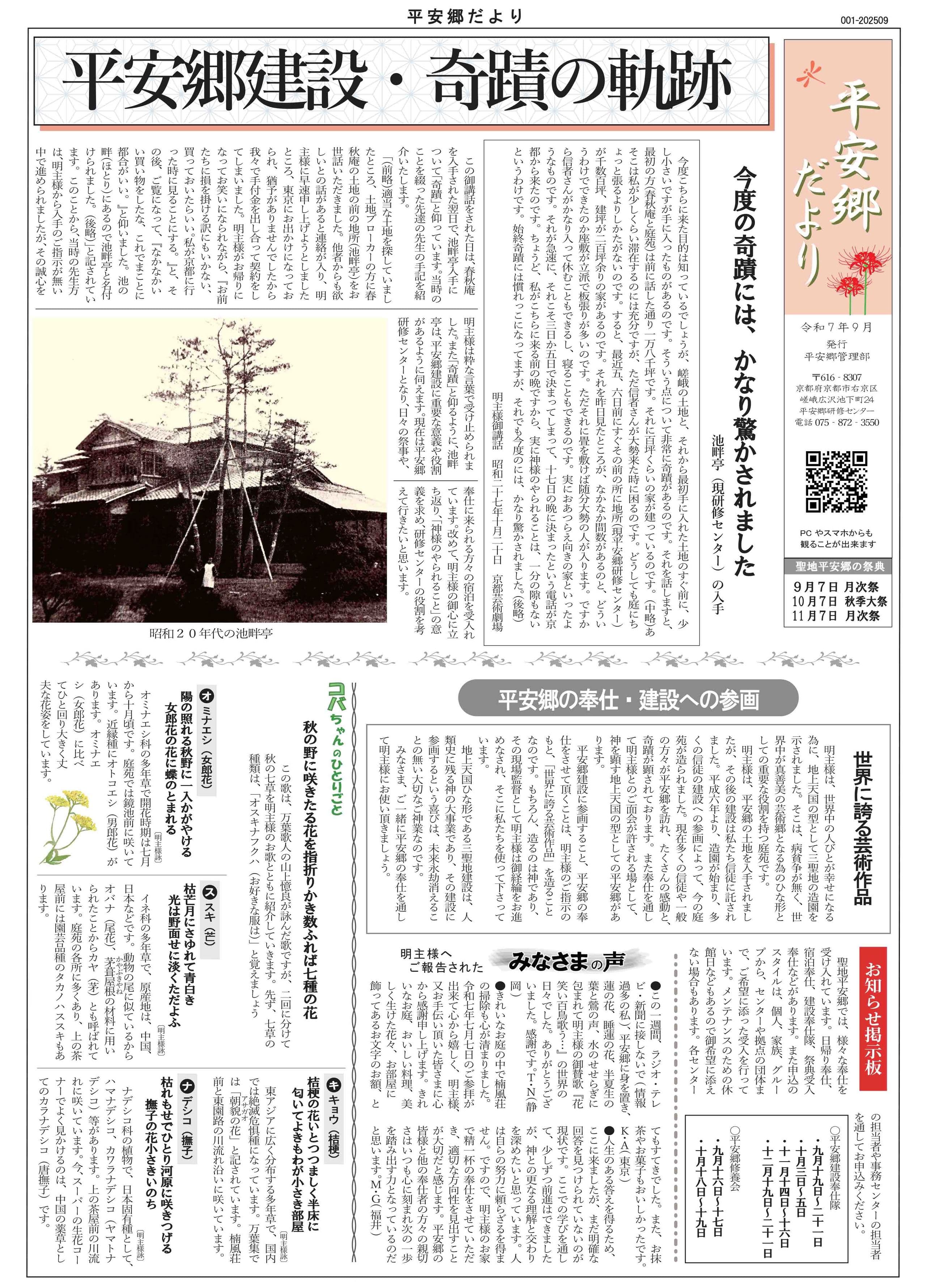 「平安郷の奉仕・建設への参画」
